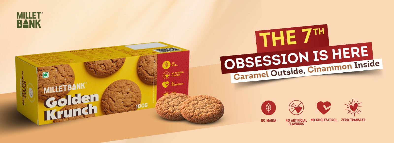 Indulge in the perfect harmony of taste and health with our GOLDEN KRUNCH Cookies. These artisanal cookies combine the wholesome goodness of Whole Wheat (Atta), Jowar, and Oats with a delightful flavor profile of Honey, Cinnamon, and Biscoff.