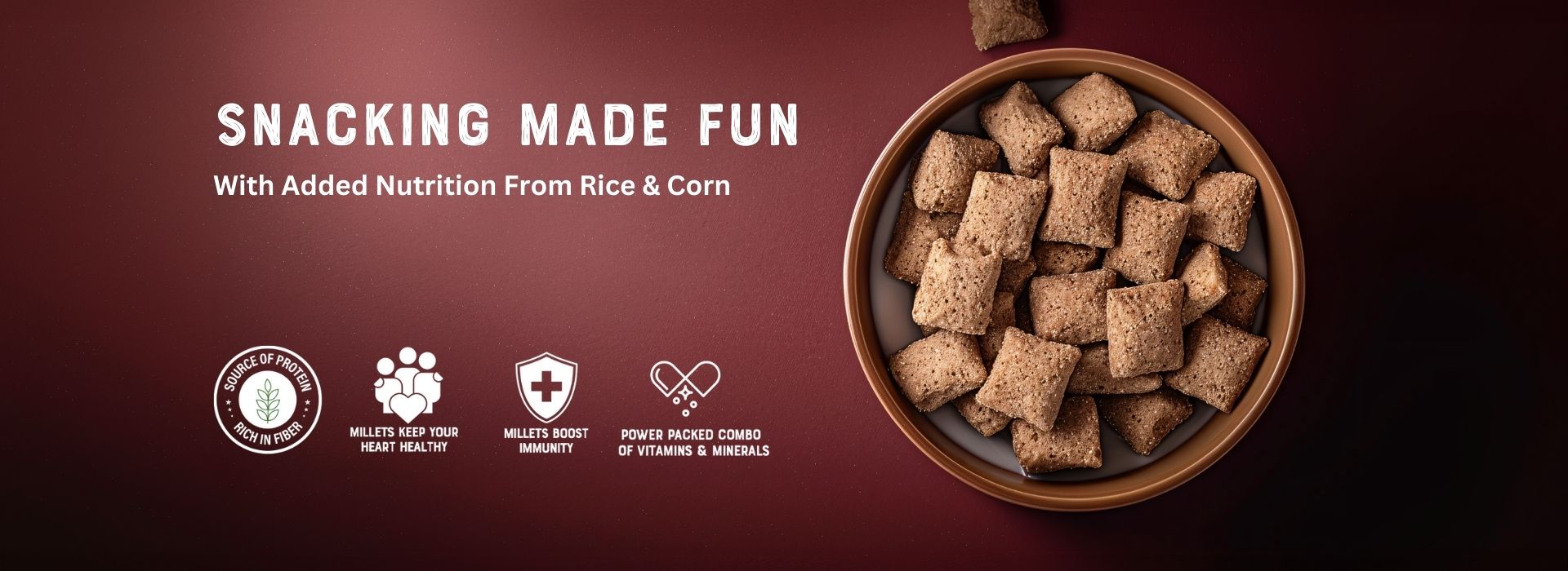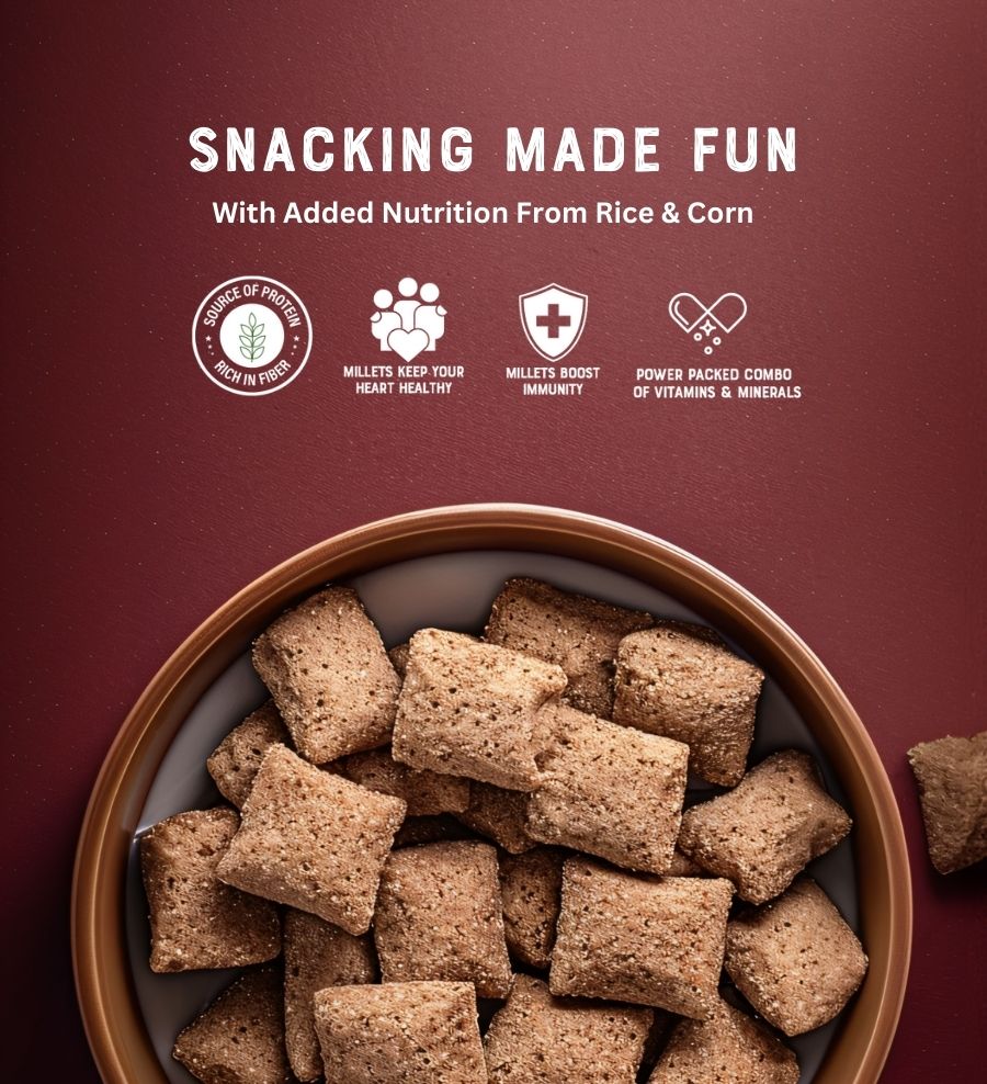 Crafted from wholesome millets, these snacks offer a light and nutritious choice to elevate your breakfast routine. Say goodbye to mundane mornings and savour them with a splash of milk for a nourishing start to your day.