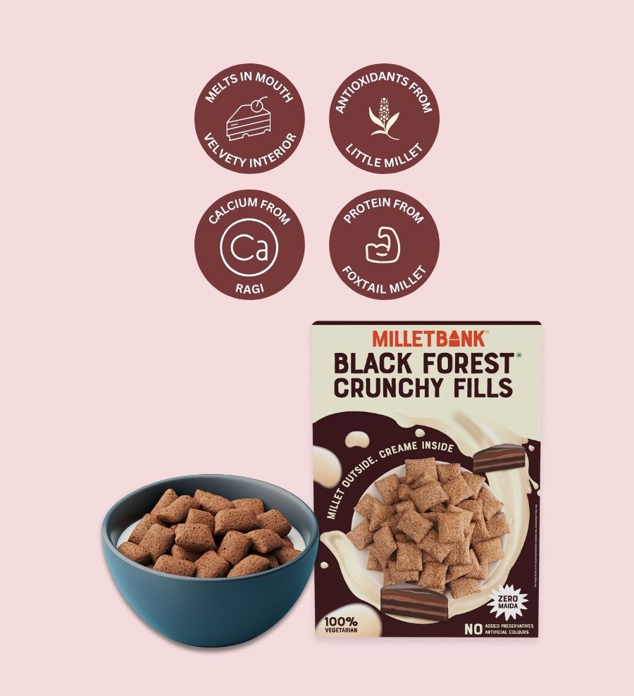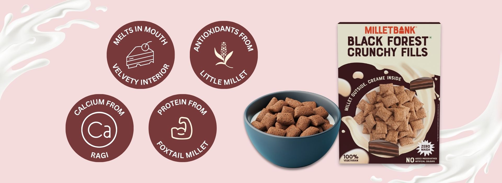 Introducing Millet Black Forest Fills, the game-changing pack of creamy-filled pillows that will take your snacking experience to new heights. Get ready to indulge in a delightful combination of textures, featuring a satisfying crunch on the outside and a velvety, mouthwatering black forest interior.