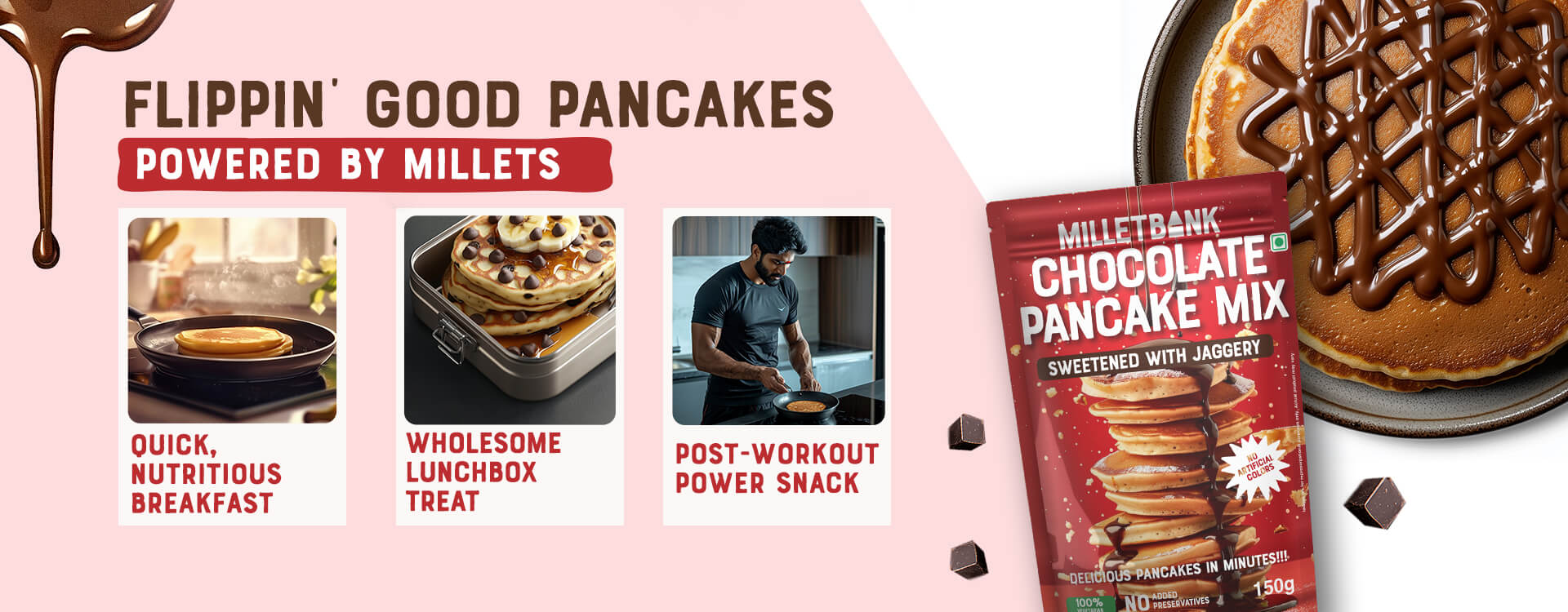 - Millet-Based Goodness: Millets are high in fiber, vitamins, and minerals, offering more nutritional value compared to regular flour-based pancake mixes.