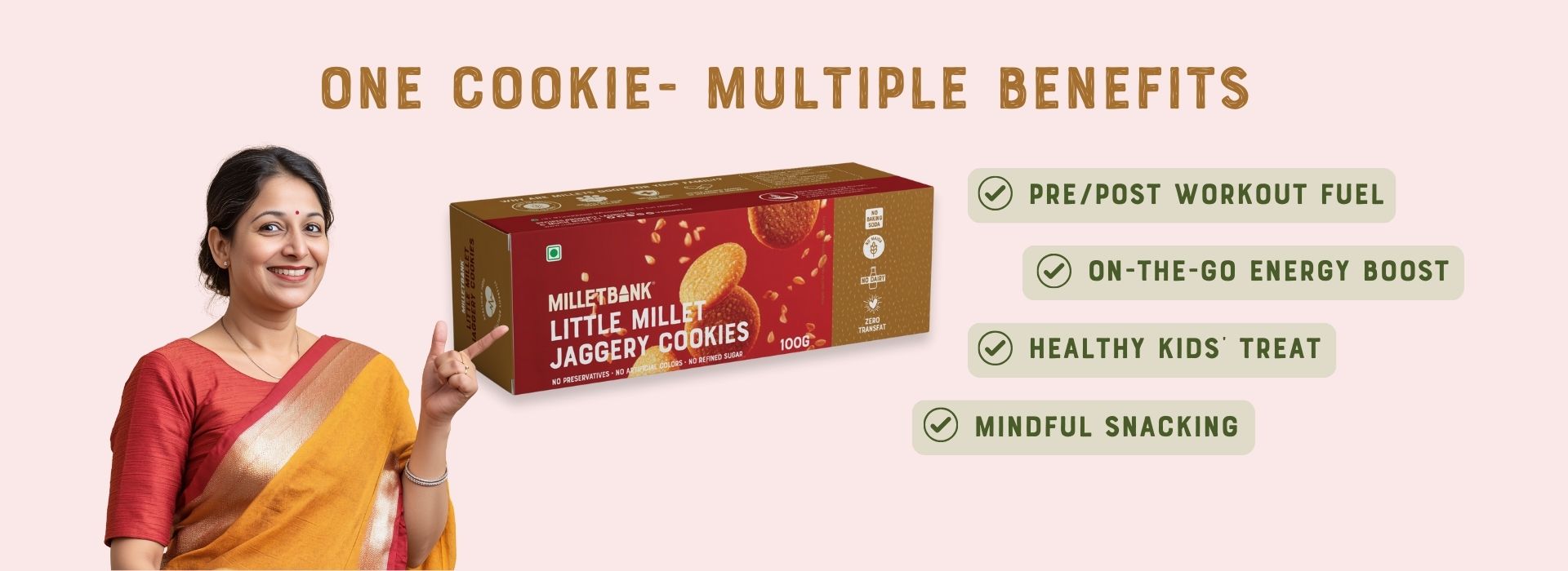 Looking for a healthy and delicious snack that satisfies your sweet tooth? Look no further than our Little Millet Jaggery Cookies!