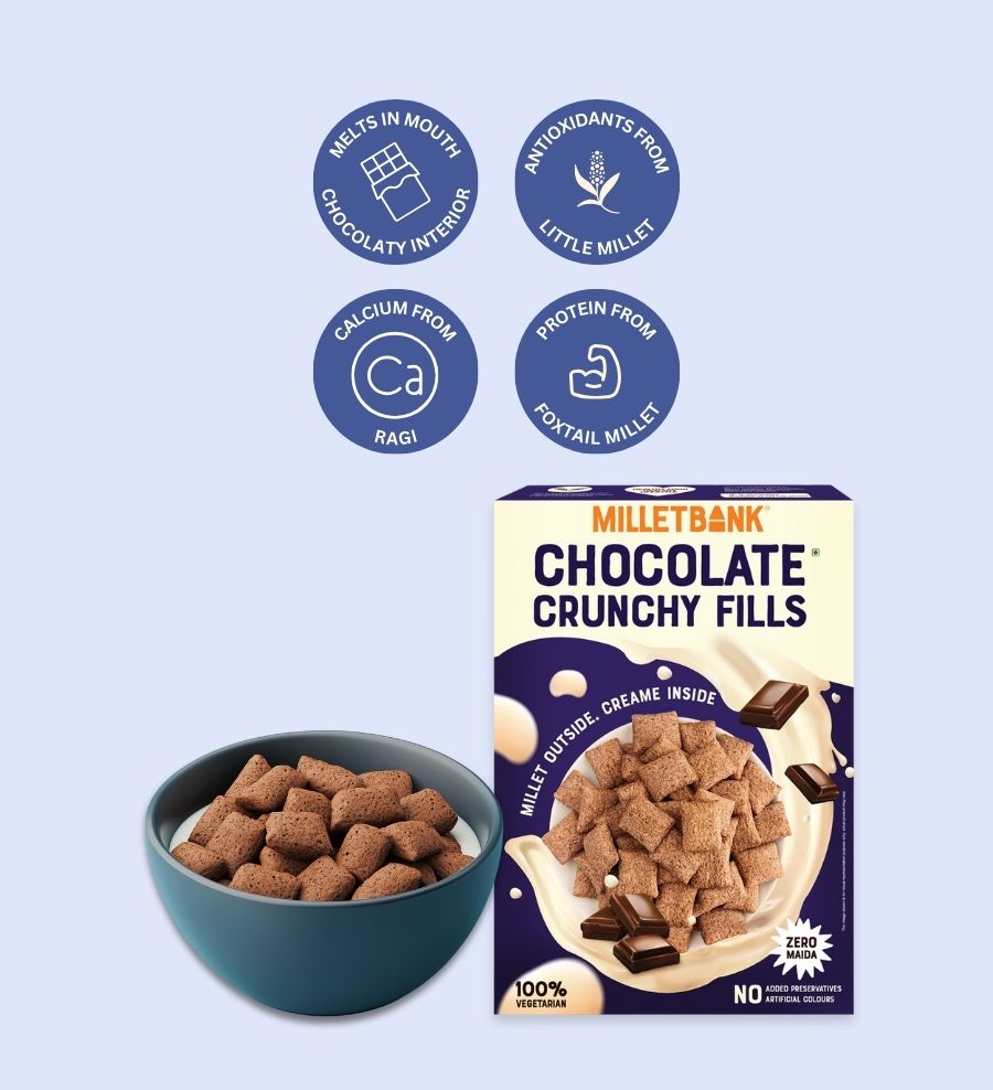 Introducing Millet Chocolate Fills: the revolutionary pack of creamy-filled pillows. Experience a delightful blend of textures with a satisfying crunch outside and a velvety, mouth-melting interior.
