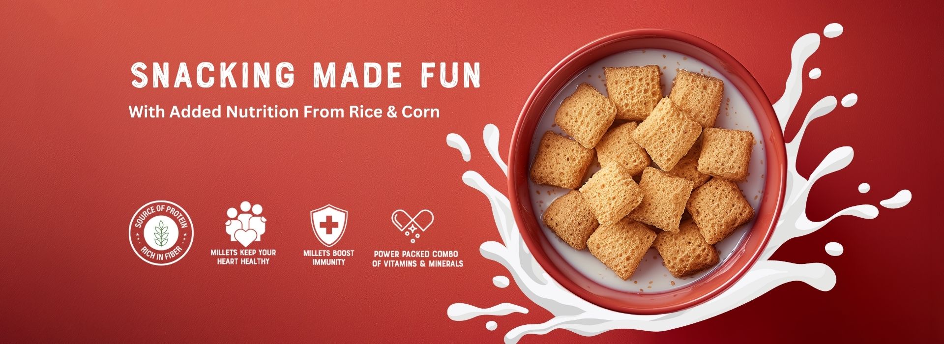 Made from wholesome millets, these snacks offer a light and nutritious option. Say goodbye to boring breakfasts and enjoy them with milk or just as it is for a wholesome start to your day.