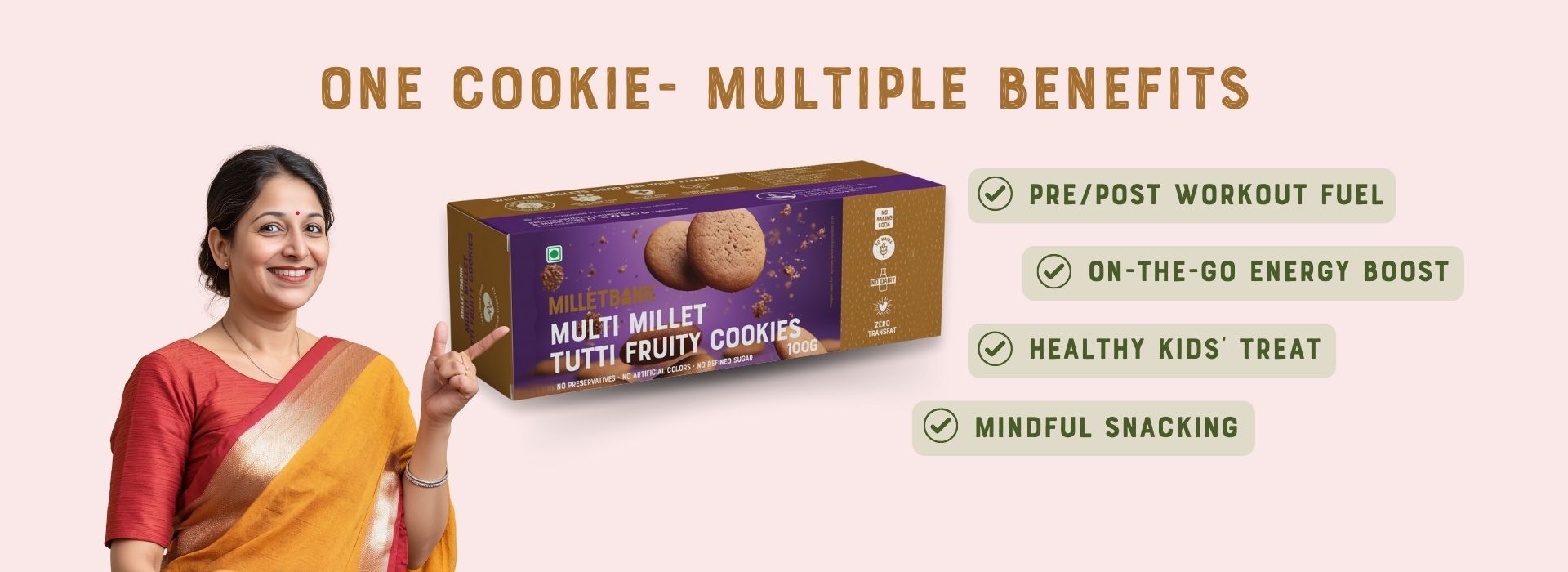 Try our Multi Millet Tutti Fruity cookies today and experience the goodness of millets in every bite!