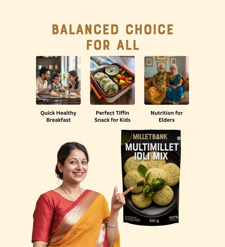 Healthier Lifestyle Choice: Embrace a healthier lifestyle with the simplicity of Multimillet Idli Mix – the perfect blend for perfect idlis.